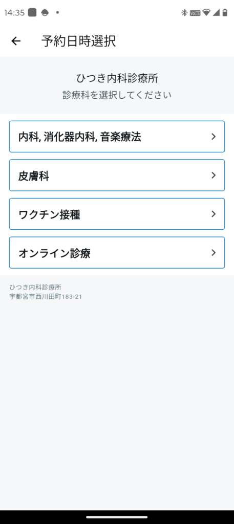 予約時に指定する診療科は「オンライン診療」を選択してください。